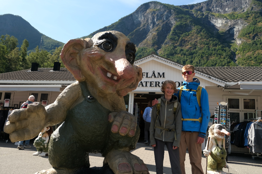 Maar eerst de treinrit zelf. Het is net voor 10.00 uur als we aankomen op het station in Flåm. In de stationshal haal ik snel onze koffie en wat lekkers en dan gaan we de robuuste groene trein in. We kiezen vier stoelen bij het raam aan de linkerkant van de trein. Mijn zoon haalt direct zijn magnetische schaakbord tevoorschijn, maar ik schud nee. Deze treinrit houden we onze blik op buiten gericht. De minuten daarna loopt de trein vol. Gelukkig hadden wij kaartjes gereserveerd, anders hadden we vandaag waarschijnlijk niet meer mee gekund.