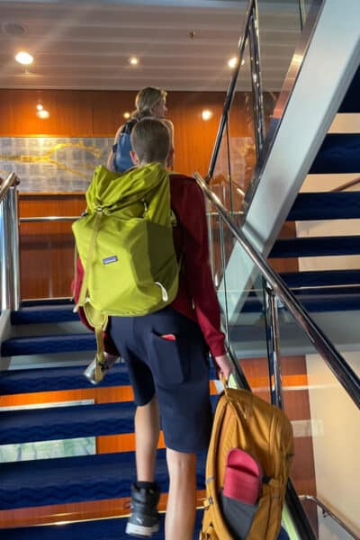 - Gebruik een kleine koffer of rugtas voor aan boord met toiletspullen en wat schone kleding. Dan hoef je niet de hele koffer mee te slepen op de ferry.
