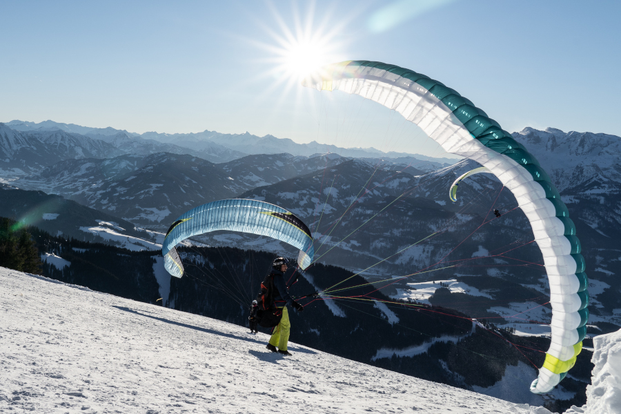 De thermiek is hier goed, en het startpunt bereik je makkelijk met de kabelbaan. Het uitzicht tijdens de vlucht geeft je een heel ander perspectief op de bergen. En als skiër herken je vanaf boven de pistes die je net nog hebt afgelegd.